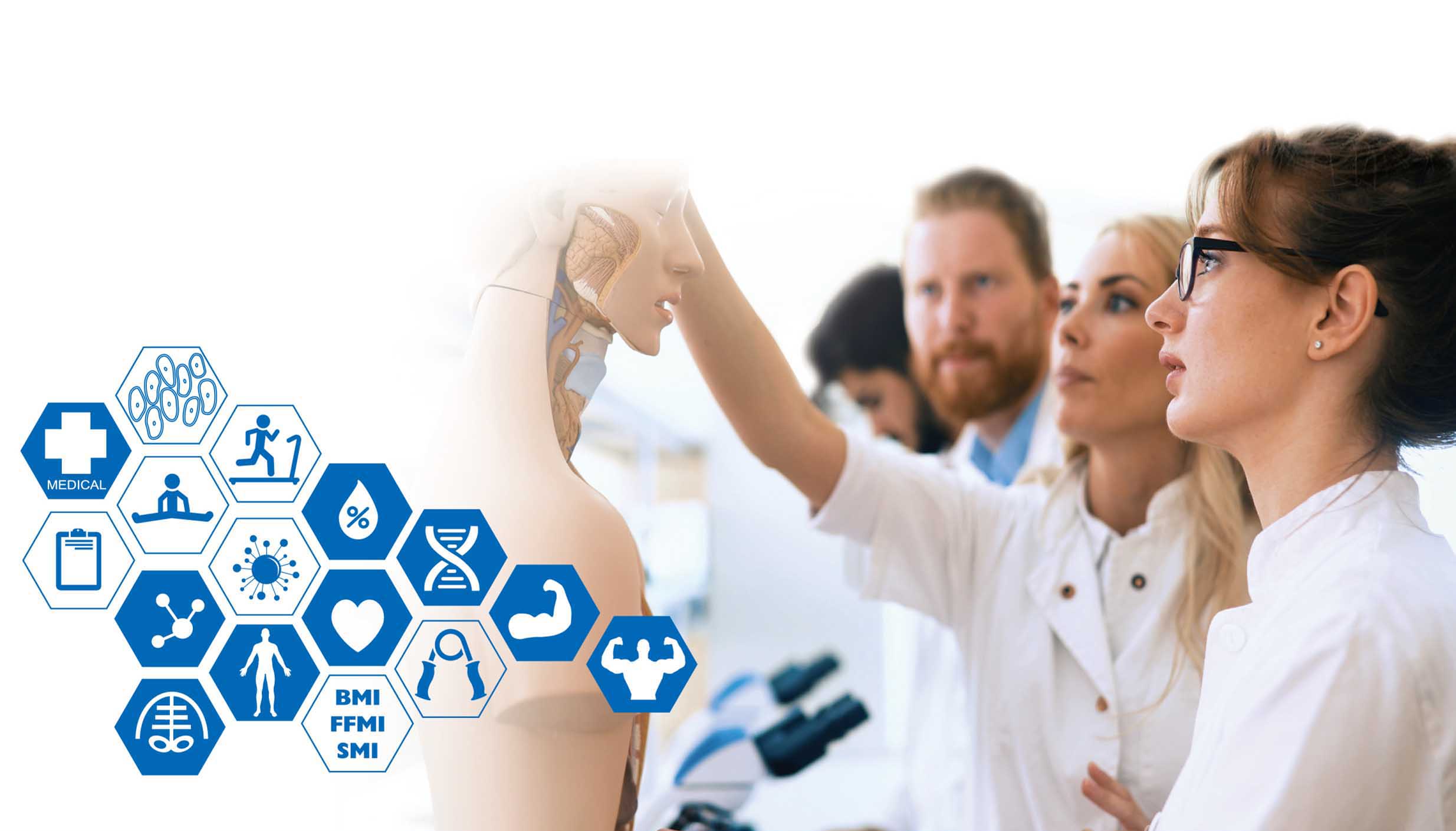 測(cè)量軀干、上肢、下肢的脂肪和肌肉,可協(xié)助醫(yī)療人員評(píng)估受測(cè)者的肌肉量是否正常與均衡。精準(zhǔn)的追蹤,能更明確的評(píng)估疾病或復(fù)健計(jì)劃的進(jìn)度。
