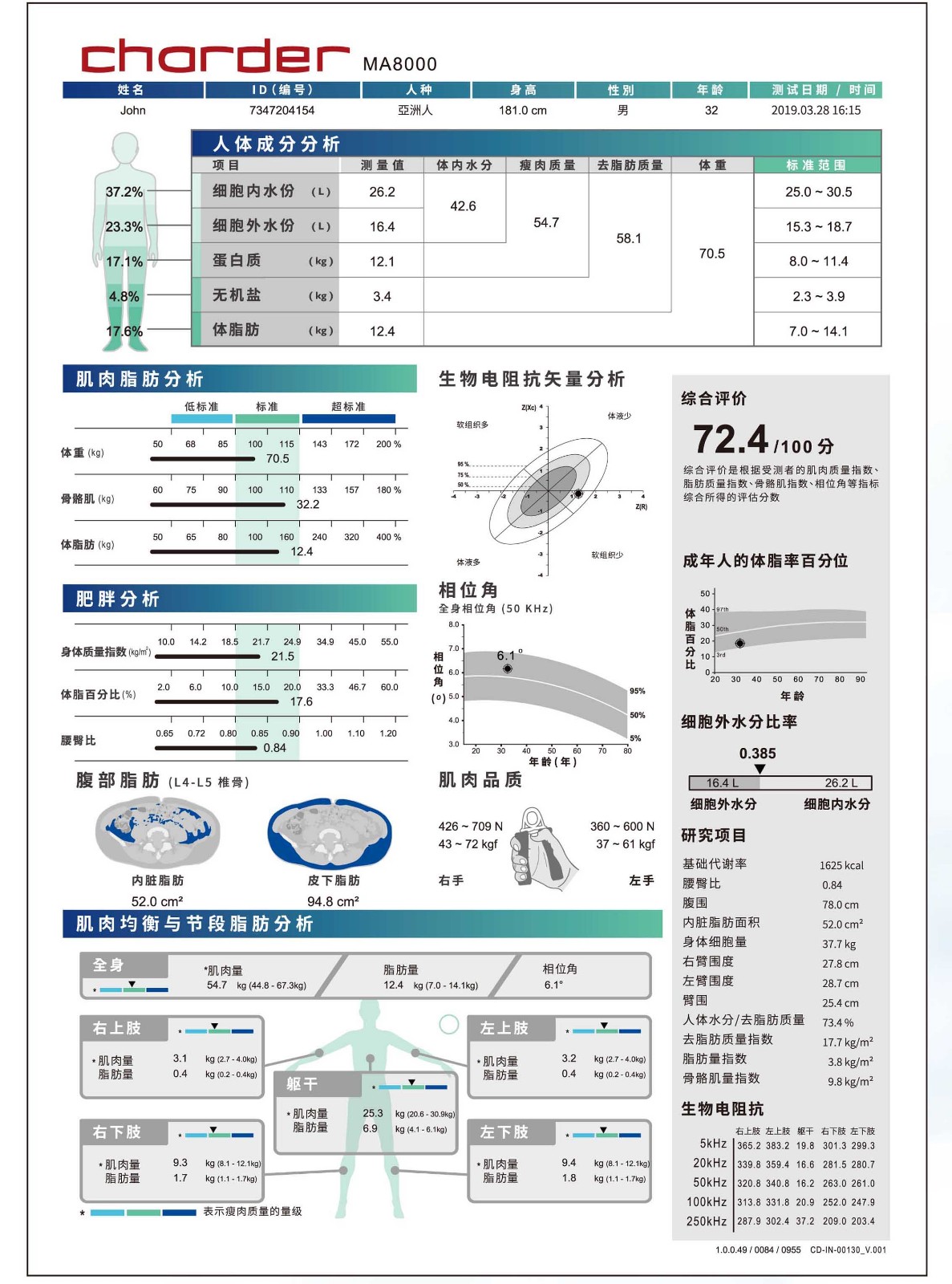 MA8000專業(yè)人體成分分析儀運(yùn)用生物阻抗分析(BIA)提供各項(xiàng)健康相關(guān)指標(biāo),多項(xiàng)人體成分測(cè)量結(jié)果包含體水分、脂肪、肌肉、細(xì)胞狀況等,并經(jīng)過(guò)大量人體試驗(yàn)驗(yàn)證,確認(rèn)產(chǎn)品的精準(zhǔn)度。